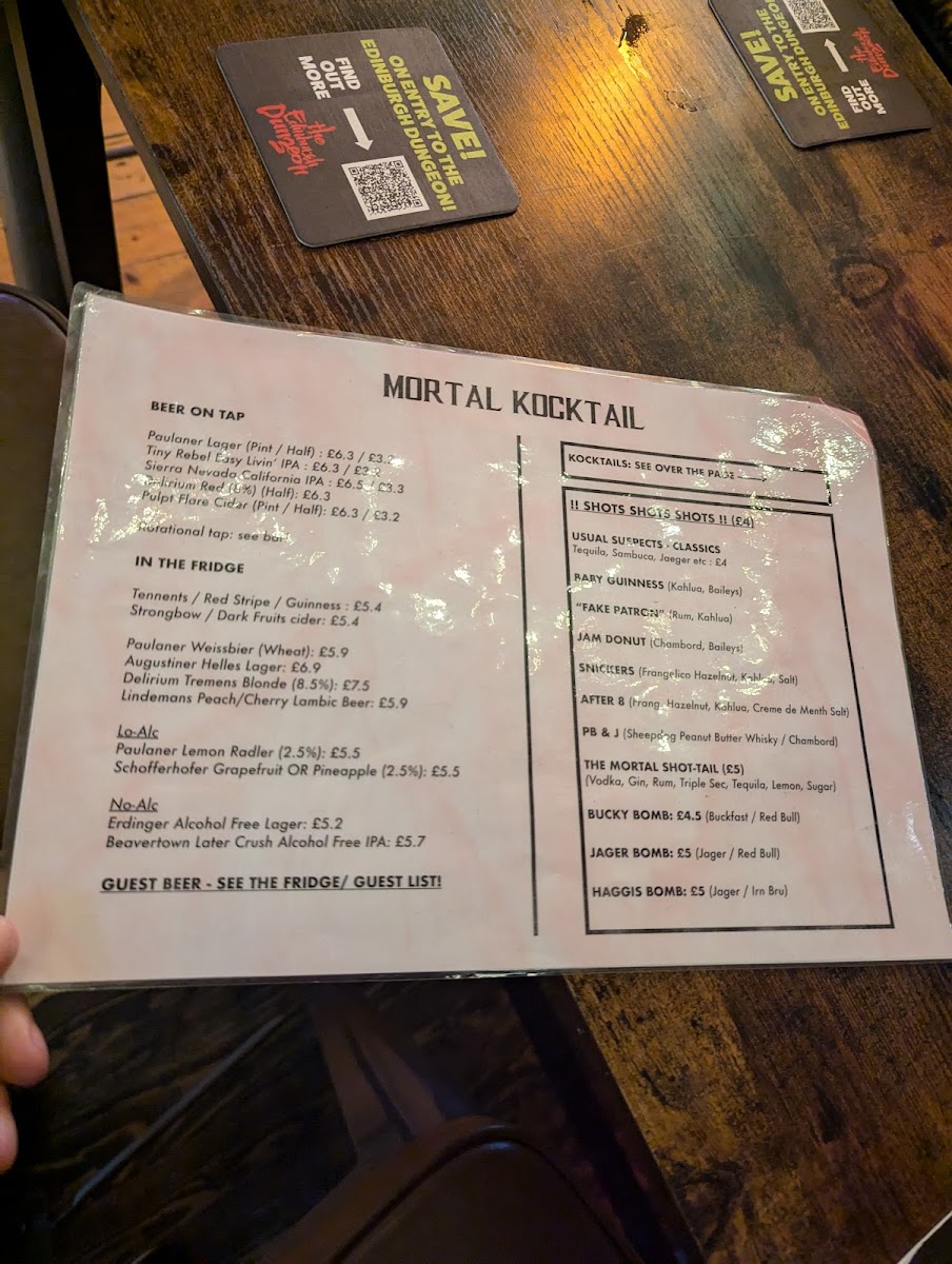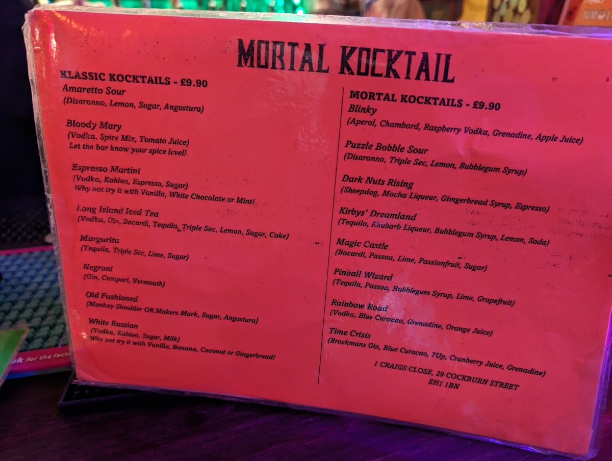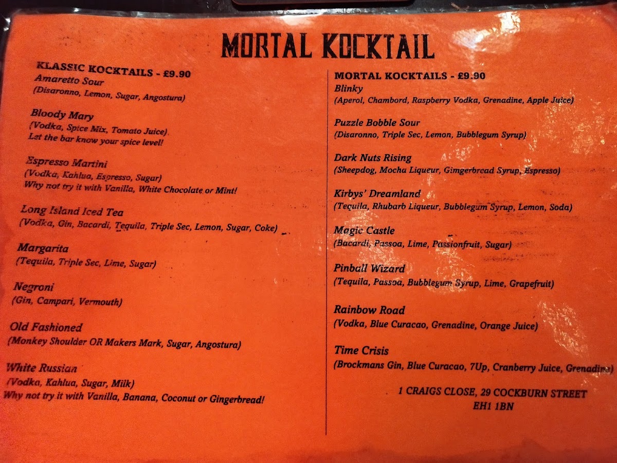 Overall, the Mortal Kocktail Menu in Edinburgh is an excellent choice for anyone looking to indulge in expertly crafted cocktails in a welcoming atmosphere. Whether you're a local or just visiting, this bar offers a memorable experience that combines creativity, quality, and exceptional service.